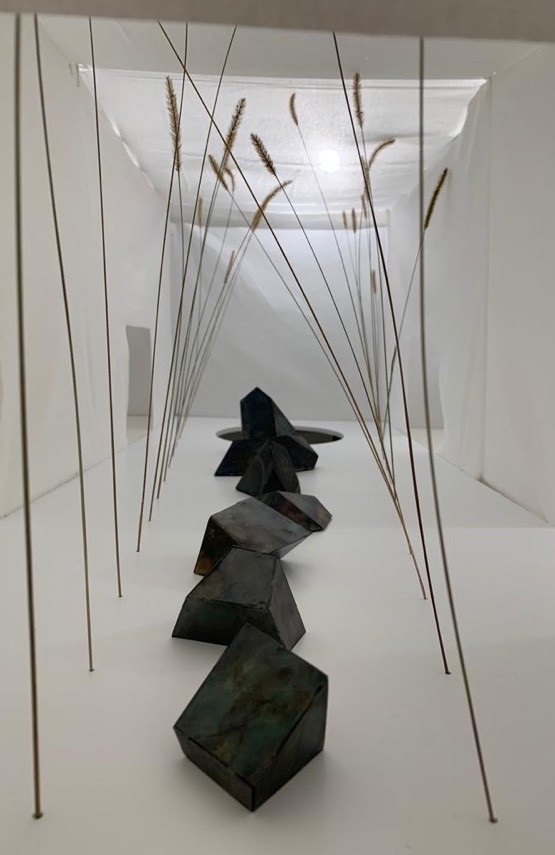 Die Metallplastikerin schafft komplexe geometrische Objekte, der Natur nachempfundene organische Skulpturen, Reliefs und Wandarbeiten wie auch verspielte Kompositionen.