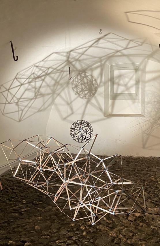 Im Keller hängt eine leichte, luftige Installation, die in Opposition zum imposanten Kellergewölbe steht. Aus den historischen Wandmalereien im Panoramazimmer ist ein eratischer Block in den Raum geschoben worden. Im Gang hängen Reliefs und im Galerieraum ist ein Minimuseum eingerichtet.